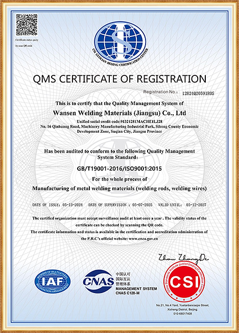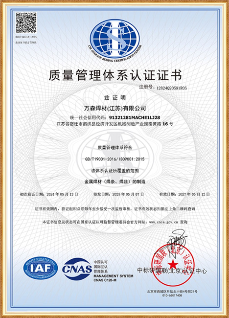 萬森焊材(江蘇)有限公司是集研發(fā)、生產、經營一體化的焊接專業(yè)公司。成立于1992年,經過30多年的發(fā)展;"萬森"牌焊接材料擁有符合客戶需求的系列焊接材料。主要產品有用于手工電弧焊的非合金鋼及細晶粒鋼焊條、高強鋼焊條、熱強鋼焊條、不銹鋼焊條、堆焊焊條、鑄鐵焊條、鎳及鎳合金焊條;適用于氣體保護焊的不銹鋼、硬面堆焊、熱強鋼、鎳基系列實芯、藥芯焊絲。